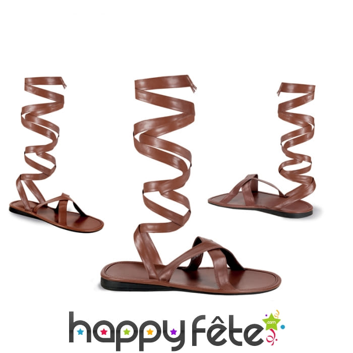 Si vous ne trouvez pas les chaussures idéales à mettre pour votre déguisement de romain, sachez que nous avons ces sandales de romain que nous mettons ici à votre disposition. Ces sandales de style spartiate sont entièrement de couleur marron. Les pointures disponibles sont 41, 43 et 45. Maintenant, Messieurs, vous pourrez surprendre vos amis en vous affichant avec un déguisement de romain qui frôle la perfection.