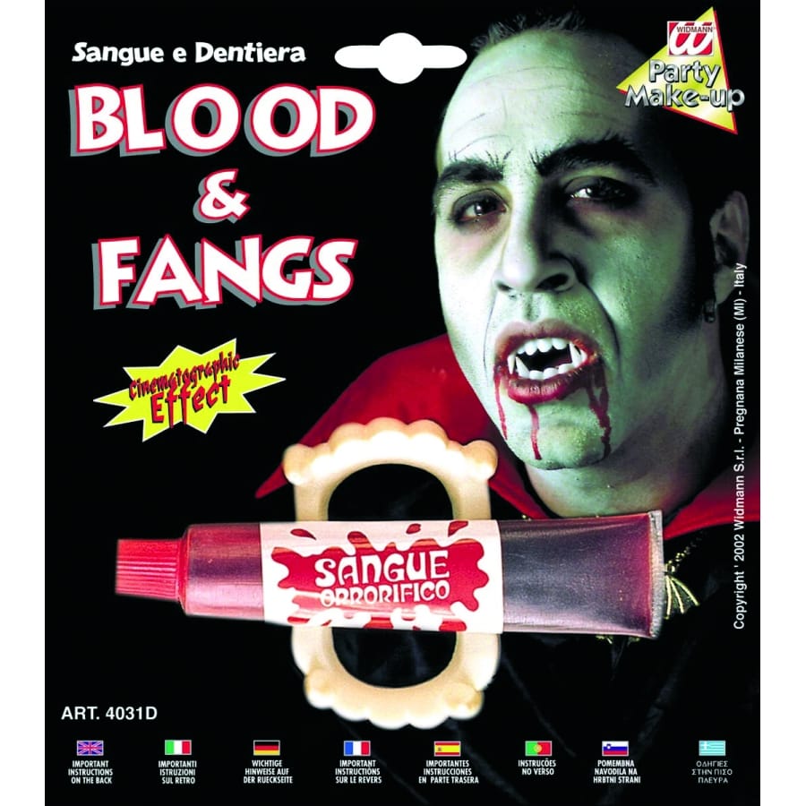 Pour finaliser votre déguisement de vampire, ce tube de sang liquide vous servira ainsi que ce dentier. Vous pourrez porter cet accessoire de déguisement pour une fete comme le carnaval, halloween. En parfait vampire avec ce dentier vous n'aurez qu'a mettre le sang liquide sur vos dents pour un effet plus réaliste.