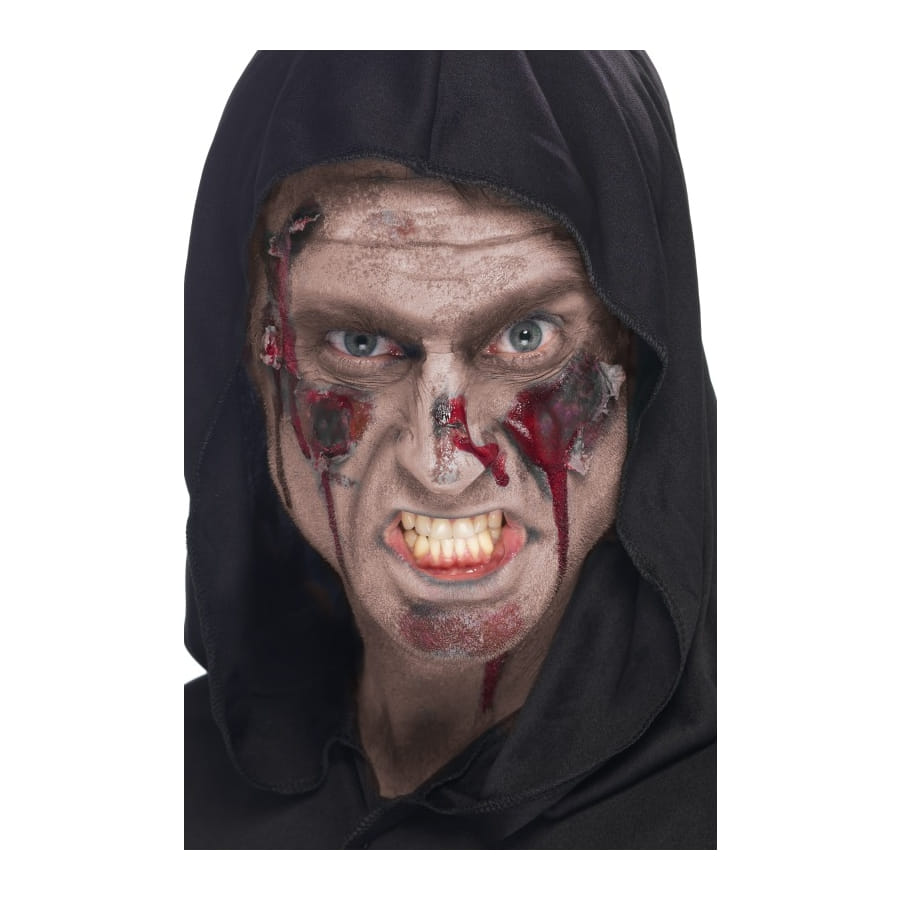 Tube contenant du faux sang de monstre de couleur rouge. Il contient 28.3 millilitres de liquide. Appliquez-le sur votre visage ou sur votre corps pour faire croire à des blessures.