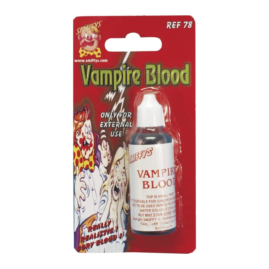 Pour peaufiner votre déguisement de vampire vous aurez besoin de ce flacon de sang. Vous n'aurez qu'à le mettre sur vous pour faire croire a une morsure. Vous pouvez utiliser ce flacon pour une fête comme Halloween.
