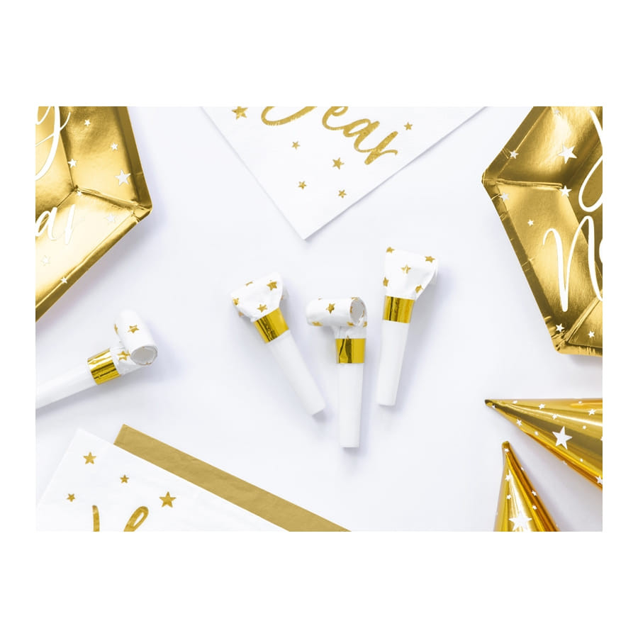 Il s'agit ici d'un lot de 6 sans gêne blancs et dorés, recouverts d'étoiles.