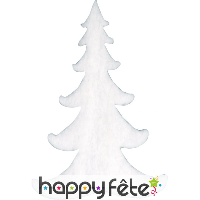 Sapin de Noël en mousse ignifugée blanche. La taille de cet accessoire est de 38 centimètres de largeur sur une longueur de 60 centimètres. Avec ce sapin, votre décoration de Noël sera plus vivante!