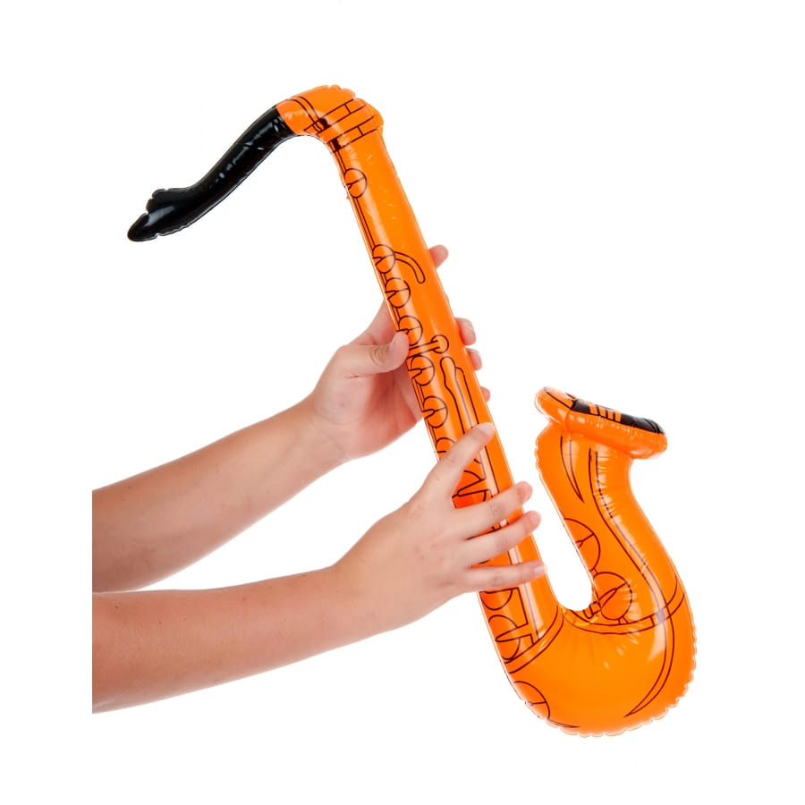 Vous pouvez mettre ce saxophone orange à gonfler dans votre panier afin de parfaire votre décoration festive lors des fêtes à thème musical.