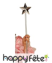 Le haut de ce sceptre représente des coeurs. Il se pare de fausses pierres de couleur rose clair. Le tout est agrémenté de strass.