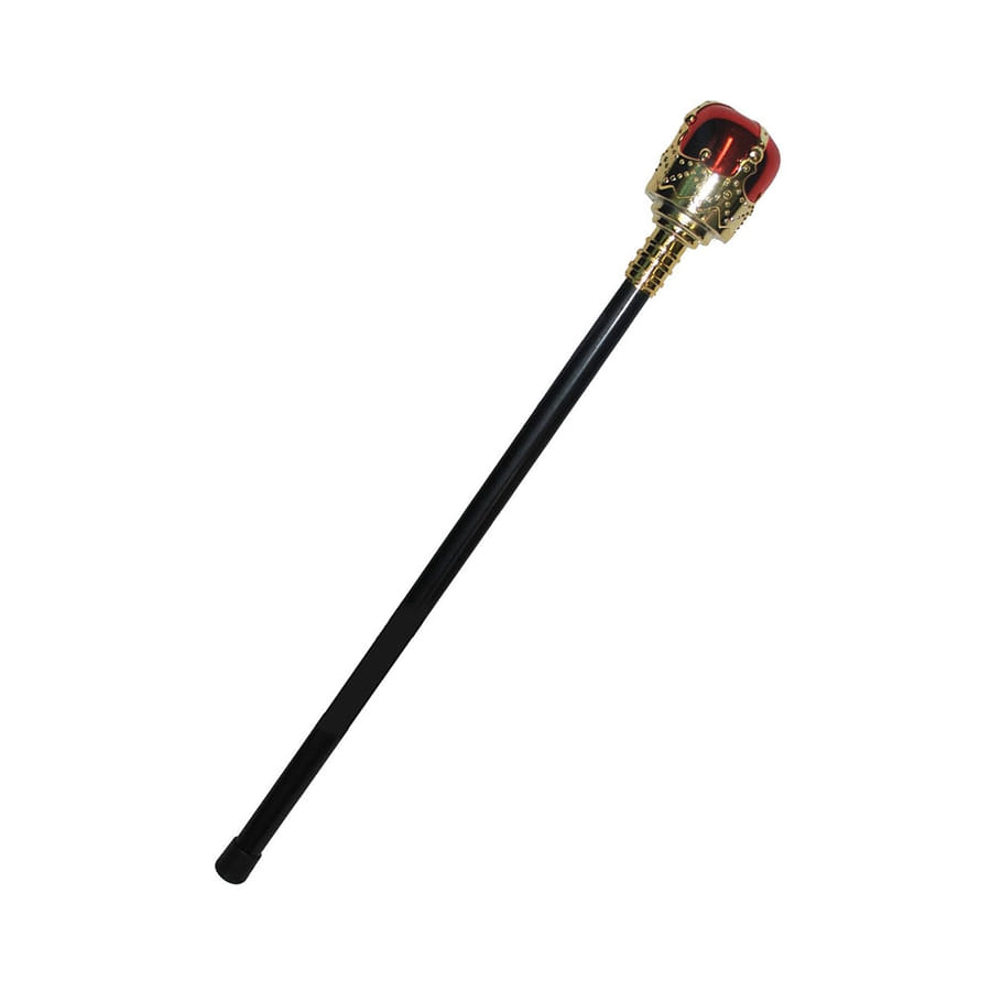 Nous parlons ici d'un bâton ornemental noir dont la partie dorée a un effet métallisé avec ce qui ressemble à une grosse pierre rouge placée au sommet.