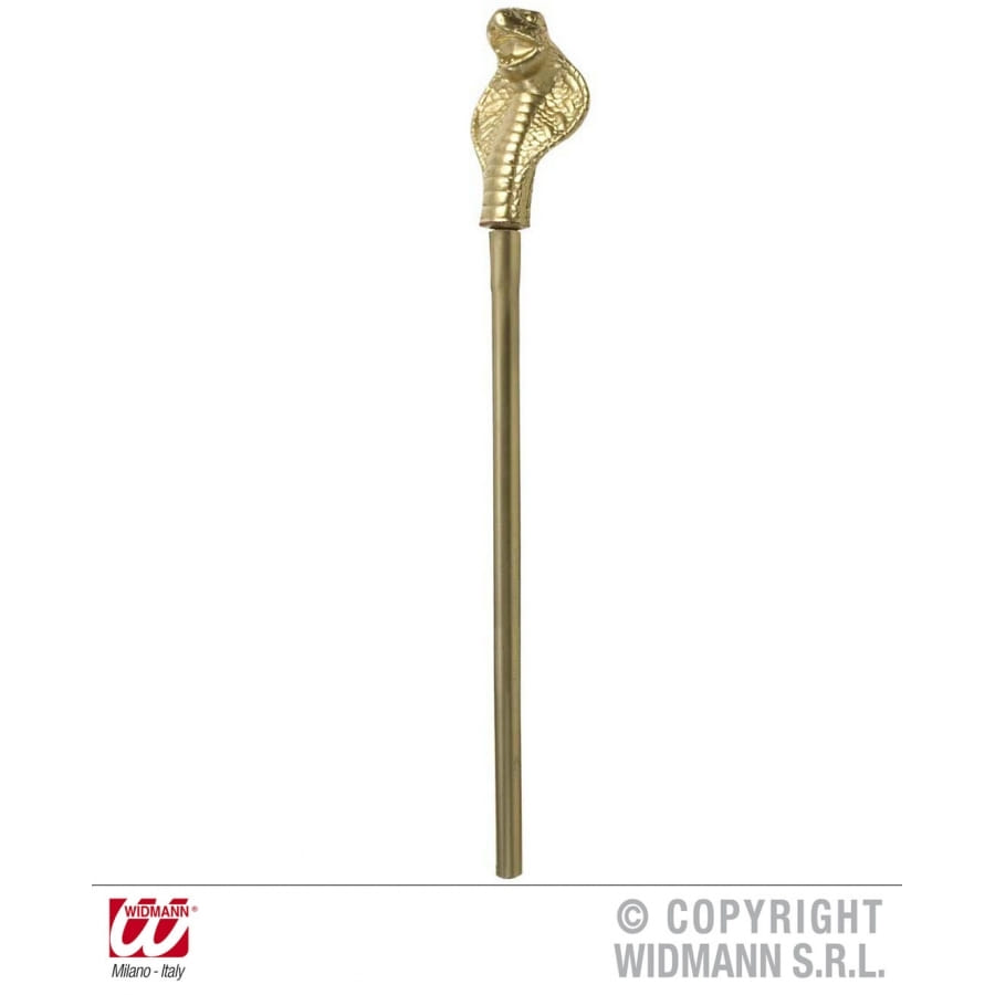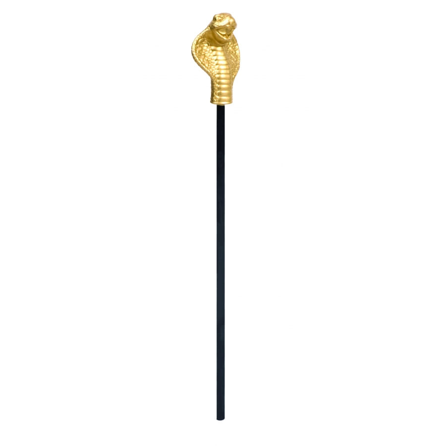Sceptre égyptien noir avec tête de serpent dorée. Le sceptre mesure 58 centimètres de long. Il est idéal pour compléter un déguisement de pharaon, de Cléopâtre ou de Néfertiti.
