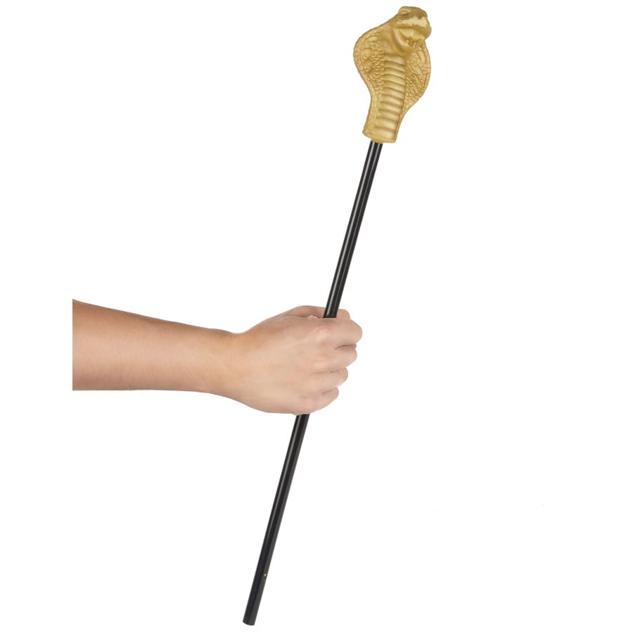 Ce sceptre tête de serpent doré, 58 cm de long est idéal pour accessoiriser un costume de sorcier, de Cléopâtre ou de Pharaon.