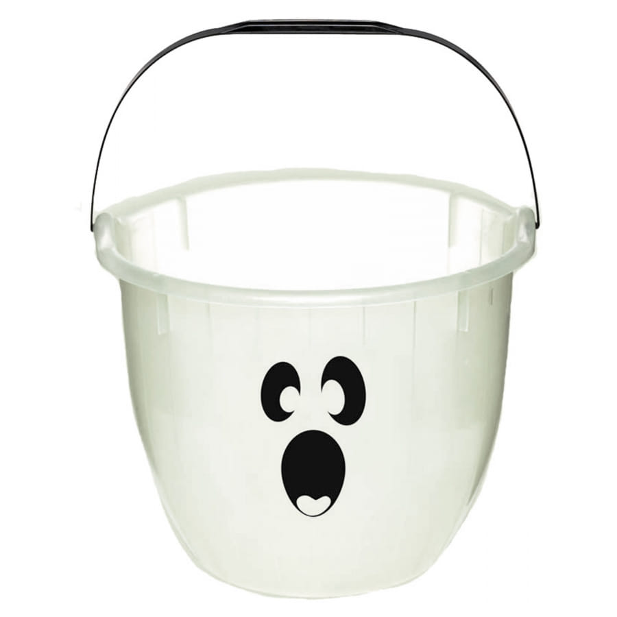 Allez à la recherche des bonbons avec votre enfant, et récoltez votre butin dans ce seau à bonbons fantôme blanc phosphorescent.