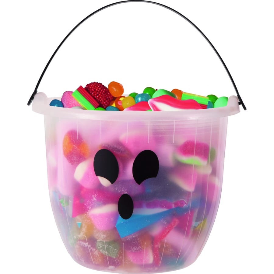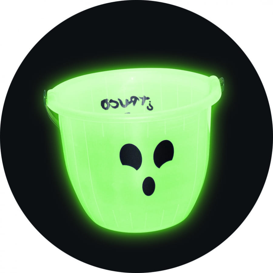 Le seau à bonbons fantôme phosphorescent est en plastique.