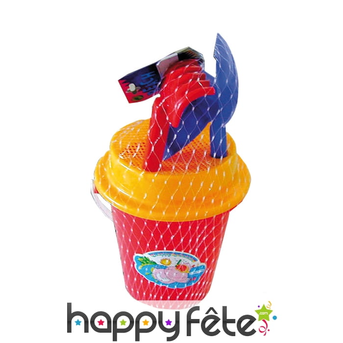 Set de plage composé d'un seau, d'une pelle, d'un rateau, d'un tamis et d'un moule. Le seau mesure 30 centimètres de hauteur. Offrez-le à vos enfants pour qu'il l'emporte avec lui dans le bac à sable ou à la plage.