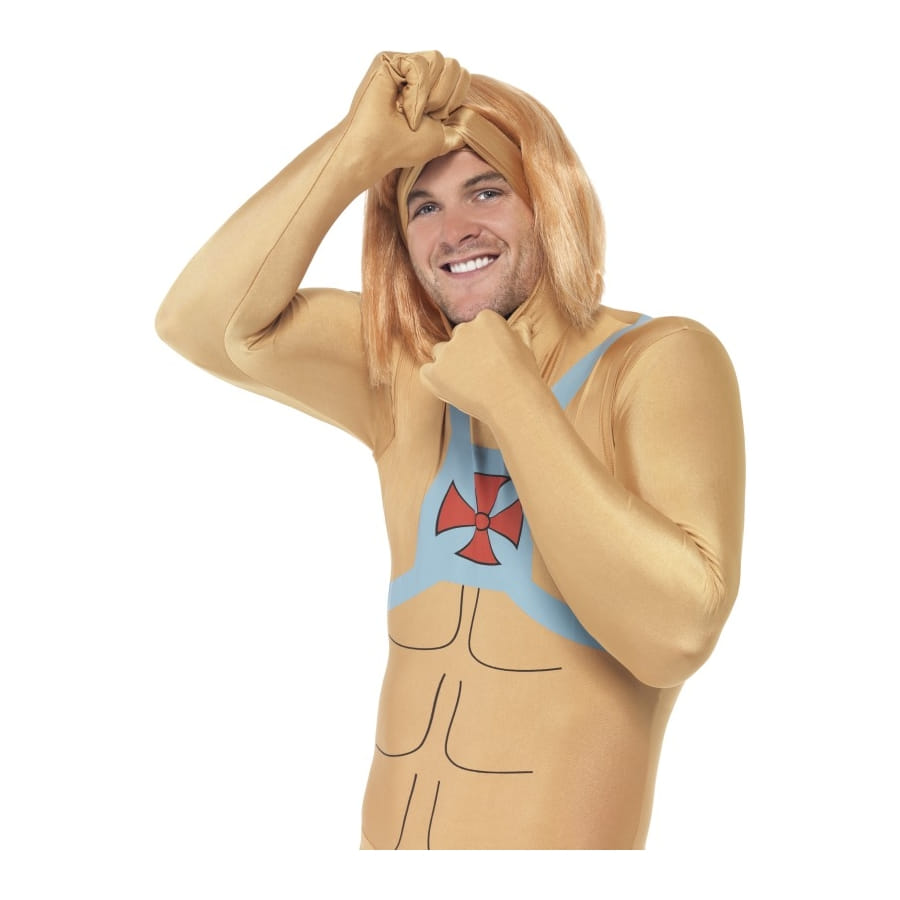 He-man, vous connaissez? Il est possible de vous déguiser en He-man, même si vous n'avez pas ses muscles et son charme. La solution est ce déguisement sous licence seconde peau qui vous recouvrira des pieds à la tête. Il a été conçu avec un costume moulant seconde-peau beige, avec des dessins de muscles abdominaux au niveau du ventre, et une partie rouge et marron au milieu et au niveau des pieds. Vous n'aurez plus qu'à mettre une perruque identique à sa chevelure et vous pourriez être le nouveau He-man. N'oubliez pas de dénicher une épée pour aller avec le costume, parce que Conan ne se déplace jamais sans son épée. Ce déguisement est disponible sous les tailles : M (poitrine entre 96 et 101 cm et un entre-jambes de 83 cm), et L (poitrine entre 106 et 110 cm et un entre-jambes de 83,8 cm). A nettoyer à sec!