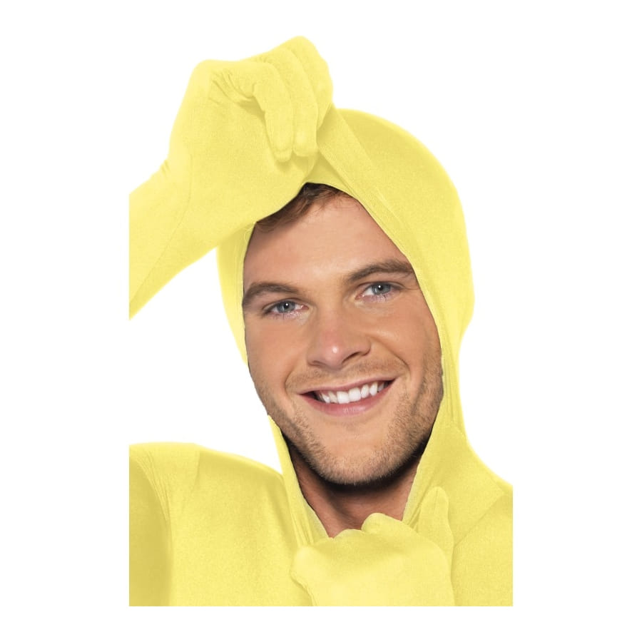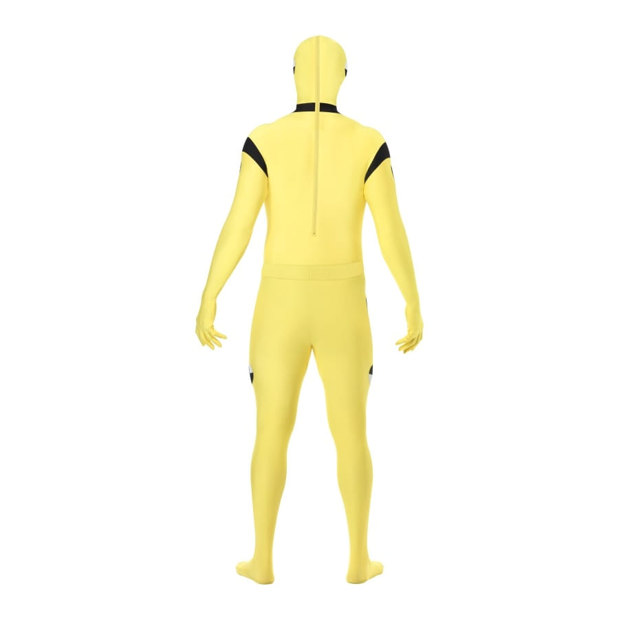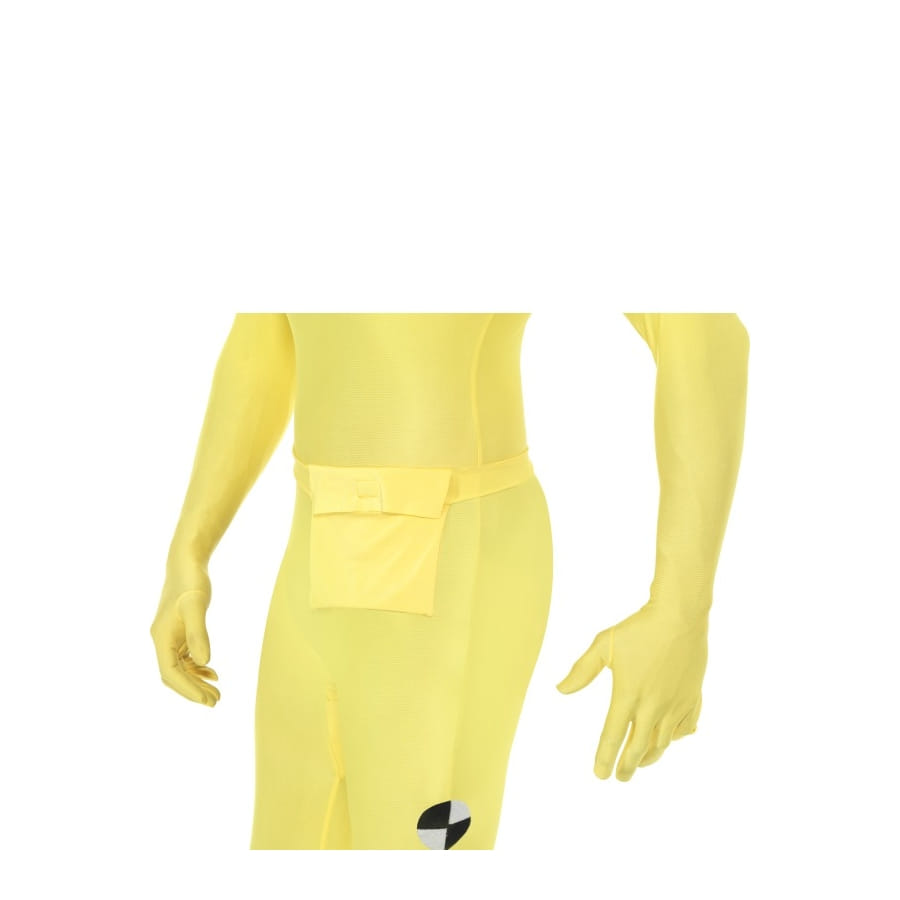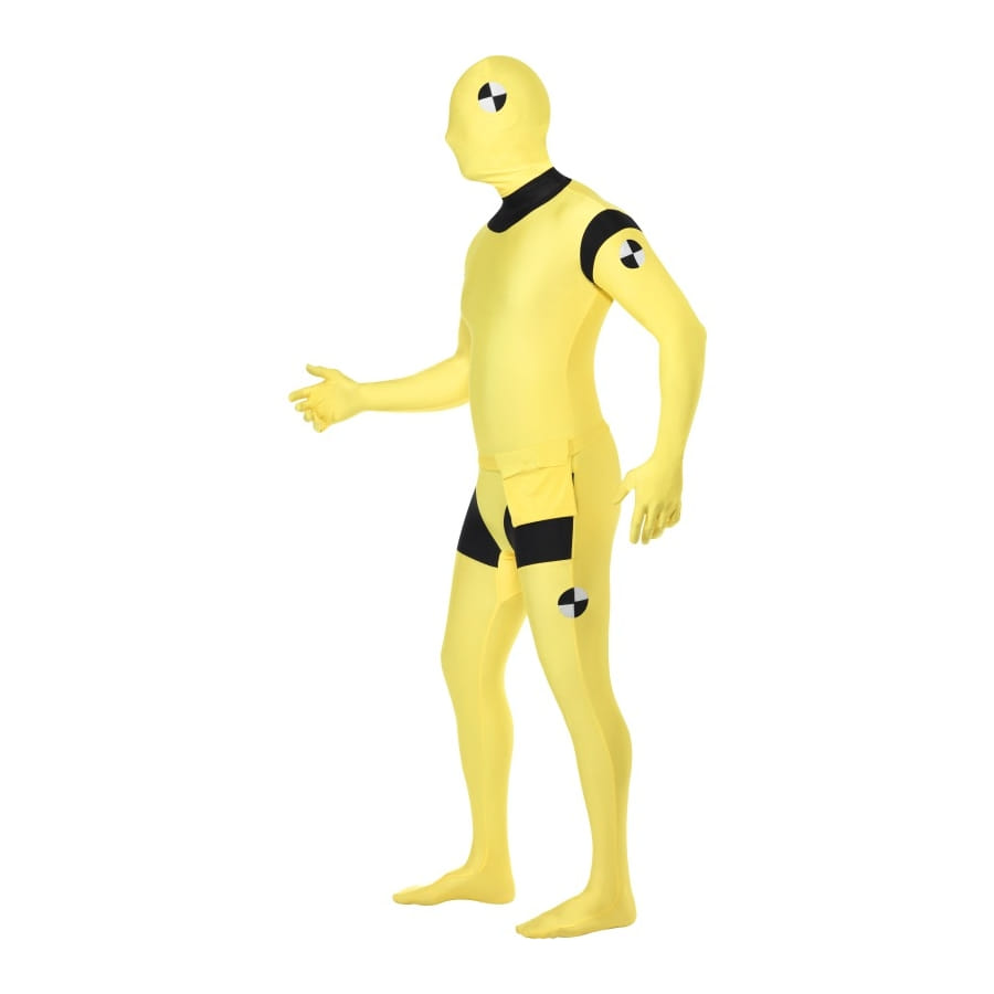 Pour le carnaval, enfiler ce déguisement personne ne vous reconnaitra avec ce déguisement de taille L. Il est composé d'une combinaison avec sac et fermeture éclaire, il s'ouvre sous le menton. Il couvre complètement le corps. Cette combinaison seconde peau crash test dummies est jaune et noire.