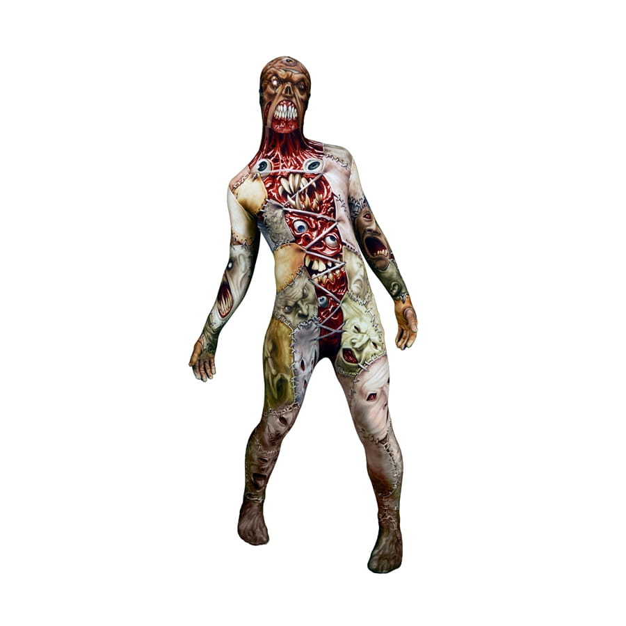 Vivez une nuit d'Halloween inoubliable avec le plus épouvantable des déguisements, que nous vous proposons ici. C'est un costume de monstre seconde peau dédié à la gente masculine (adulte). Il se compose d'une combinaison intégrale, qui ne laisse aucune partie nue, de la tête aux pieds (tout attaché). La combinaison est imprimée d'un affreux monstre qui porte un vêtement déchiré, recousu et lacéré d'une manière très sordide, avec des yeux, des dents et des têtes de monstre partout. Une fermeture éclair est cousue à l'arrière de la combinaison pour que vous puissiez l'enfiler facilement. Ainsi, le monstre, ce sera vous ! En route pour la soirée la plus terrifiante de l'année !