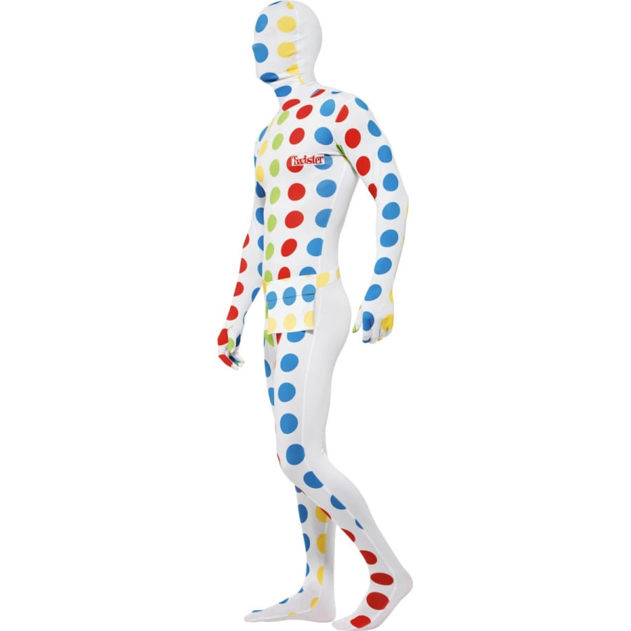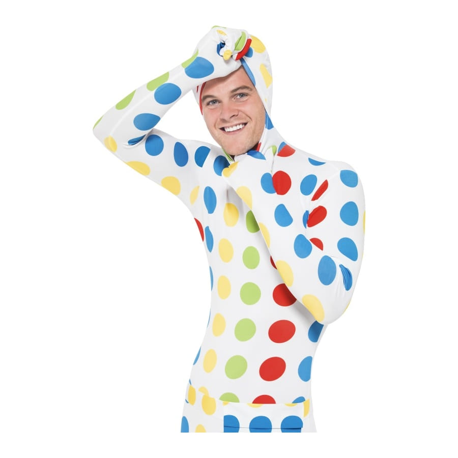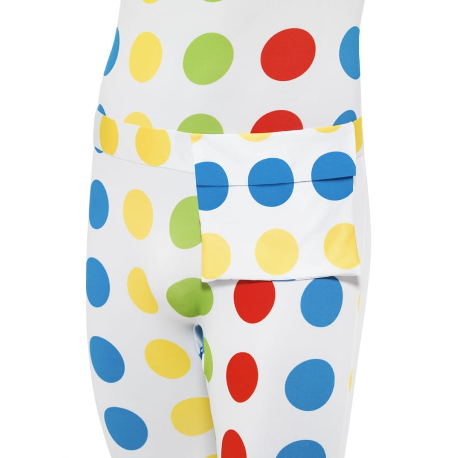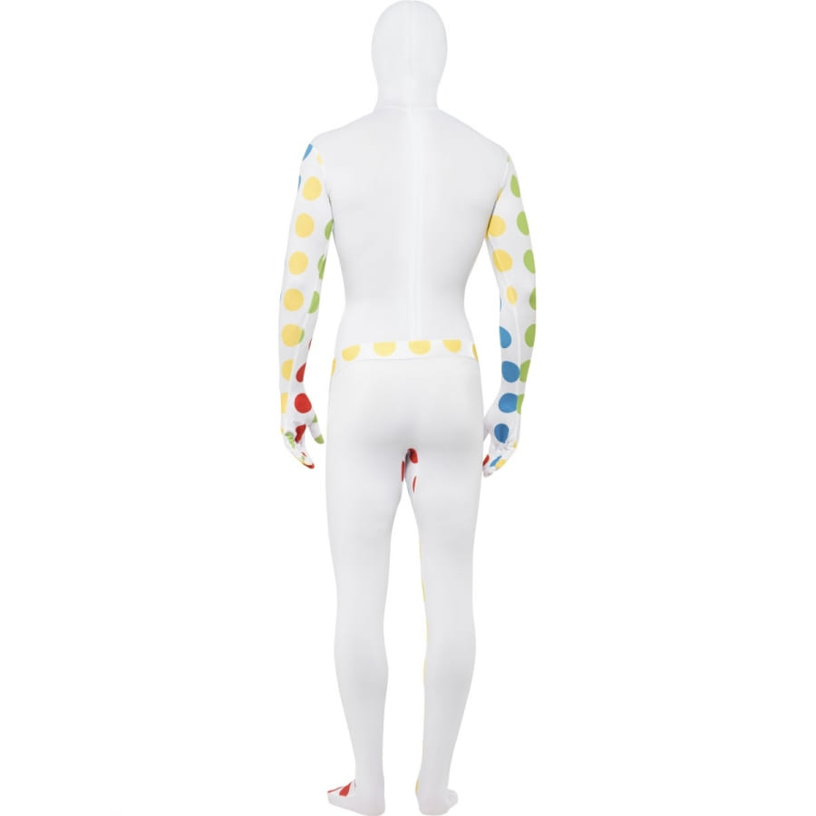 Enfin un peu de congé!... pourquoi ne pas en profiter pour passer du bon temps avec la famille? Et qui dit réunion de famille dit repas, bavardage et jeux de société bien sûr. Des moments chaleureux à ne surtout pas rater. Surprenez-les avec cette seconde peau Twister pour homme, sous licence seconde peau, ... ça rajoutera encore plus de fun à cet instant déjà très plaisant. Il est formé d'une seconde peau blanche imprimée de contours de couleurs blanche, bleue, rouge, verte et jaune, d'un sac banane avec les mêmes couleurs. Cet ensemble est disponible en taille M (correspondant à Poitrine 96 - 101 cm, entrejambe 83 cm), et L (correspondant à Poitrine 106 - 110 cm, entrejambe 83,8 cm) et il est conseillé de le nettoyer à sec uniquement.