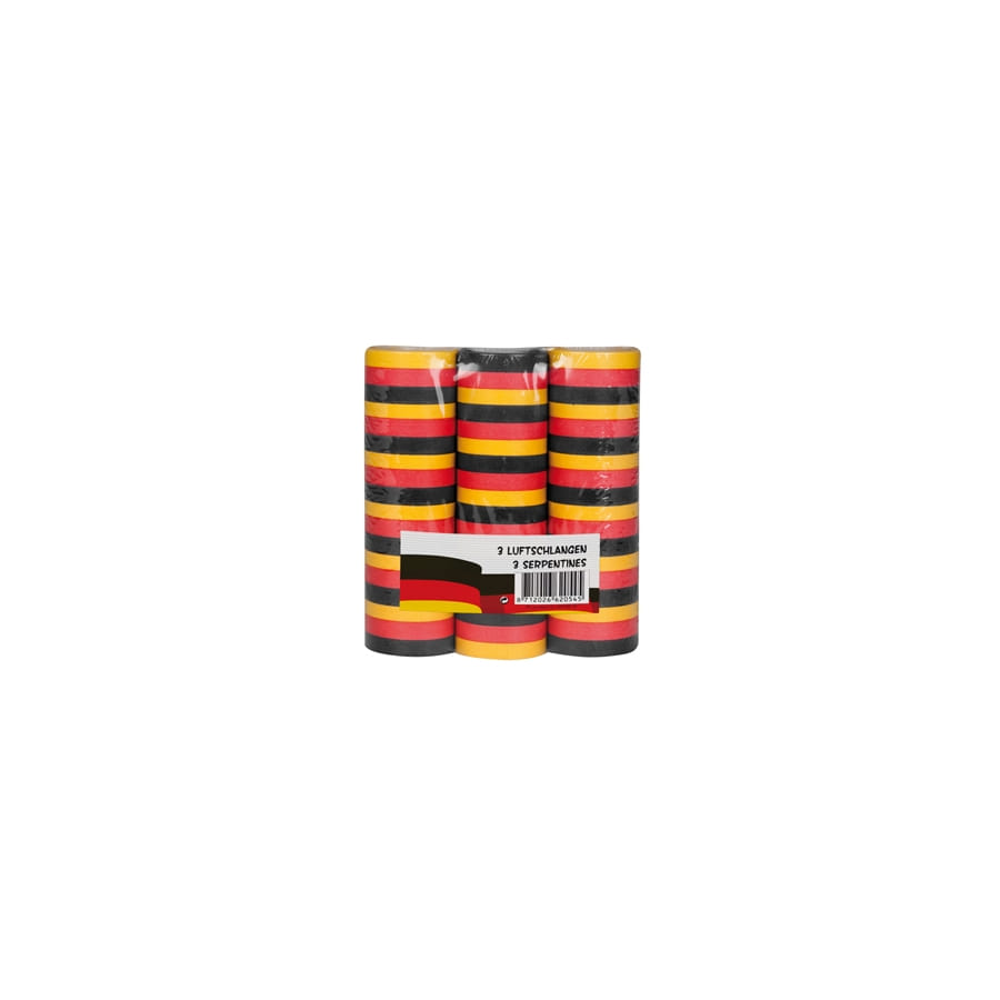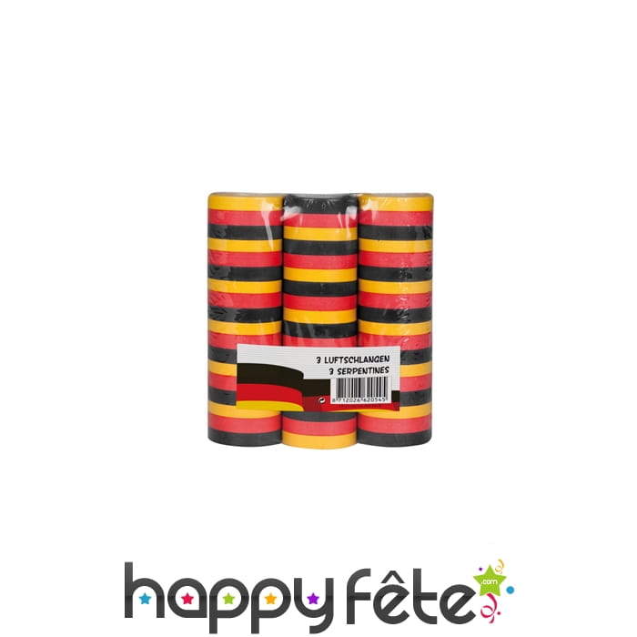 Instaurez une ambiance unique en projetant des serpentins dans l'air ! Un pays est à l'honneur dans ce lot de 3 rouleaux de serpentins Allemagne. En effet, vous y retrouverez les couleurs du drapeau allemand à savoir le noir, le jaune et le rouge. L'article sera donc parfait pour animer un événement sportif.