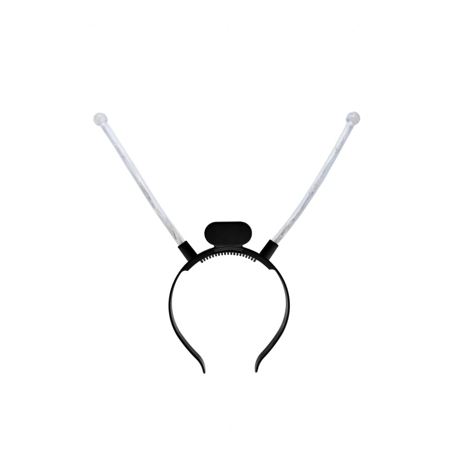Serre-tête de couleur noire, monté de deux antennes d'alien de couleur blanche, pour femme ou adolescente. Cet accessoire est idéal pour une soirée science-fiction ou futuriste où vous souhaitez vous déguiser en alien ou extra-terrestre.
