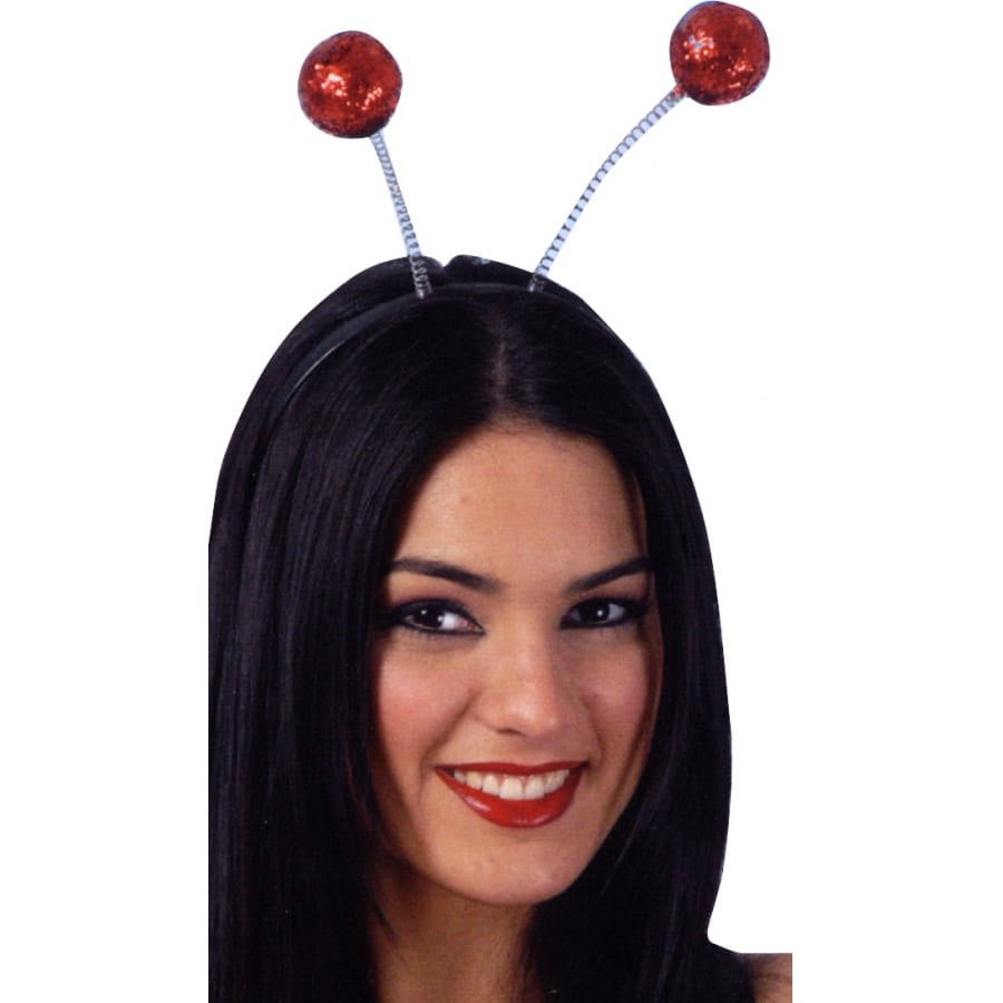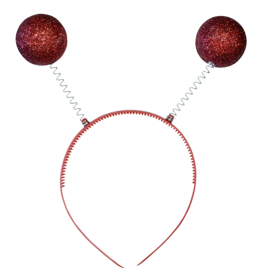 Vous pourrez compléter un déguisement d'animal avec ce serre-tête agrémenté de deux boules de couleur rouge et recouvertes de paillettes. Cet accessoire vous ira comme un gant pour un carnaval sur le thème des animaux.