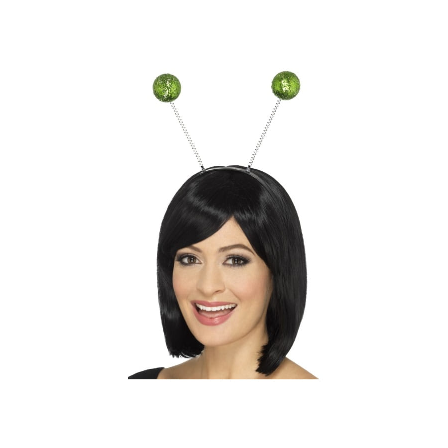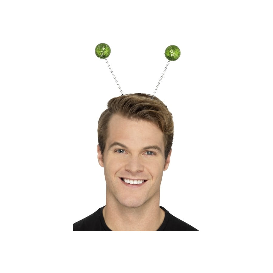 Les extraterrestres n'ont pas encore envahi la Terre, mais ils peuvent envahir vos soirées entre amis. Amusez-vous dans la peau d'un alien grâce à ce serre tête antennes boules vertes à paillettes. Ce modèle pour homme et femme est très efficace pour accessoiriser un déguisement futuriste. Il est constitué par un serre-tête sur lequel deux antennes à boule verte ont été implantées.