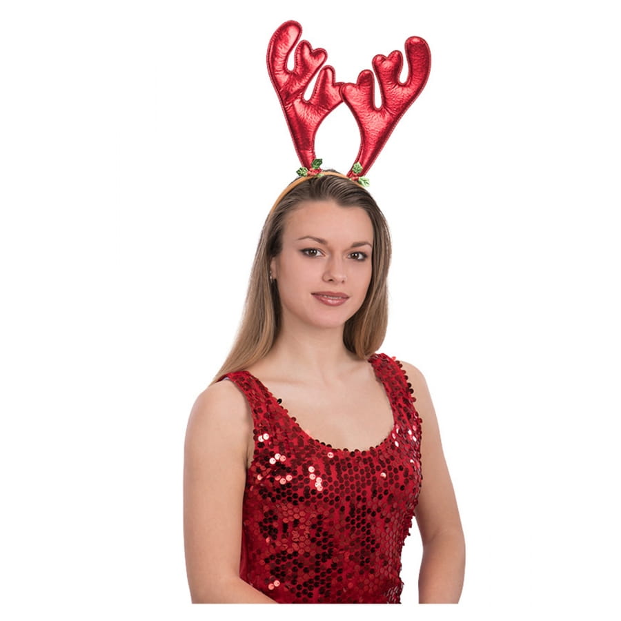 Le serre-tête bois de renne rouge brillant adulte est un accessoire qui conviendra aussi bien aux femmes qu'aux hommes.
