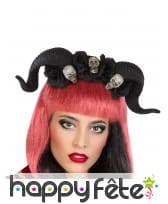 Montrez-vous à la hauteur du prochain Halloween en arborant le serre-tête cornes noires de démon avec crânes.