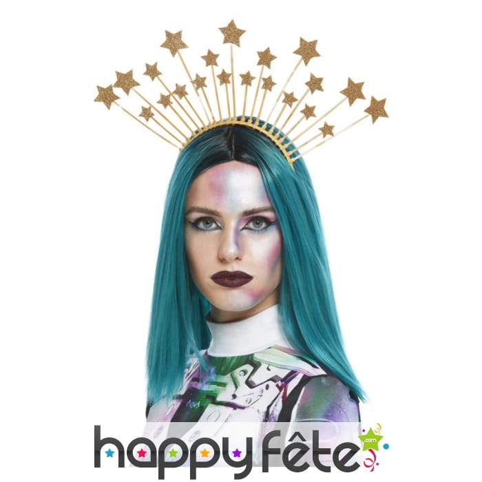 Ce serre-tête est surmonté de plusieurs étoiles dorées fixées sur des pics de couleur or.