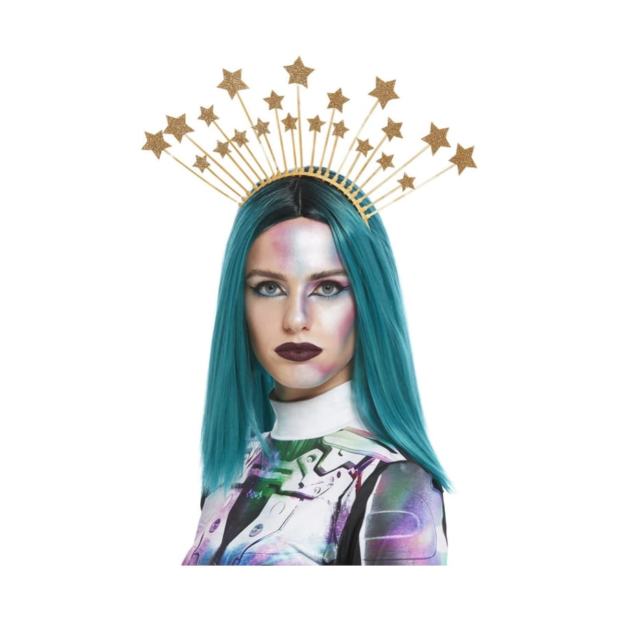 Complétez une tenue d'alien venu du futur, grâce au serre-tête d'étoiles dorées pailletées.