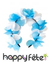 Ces dernières sont de couleurs bleues et blanches qui s'alternent sur le serre-tête pour former une élégante petite couronne de fleurs.