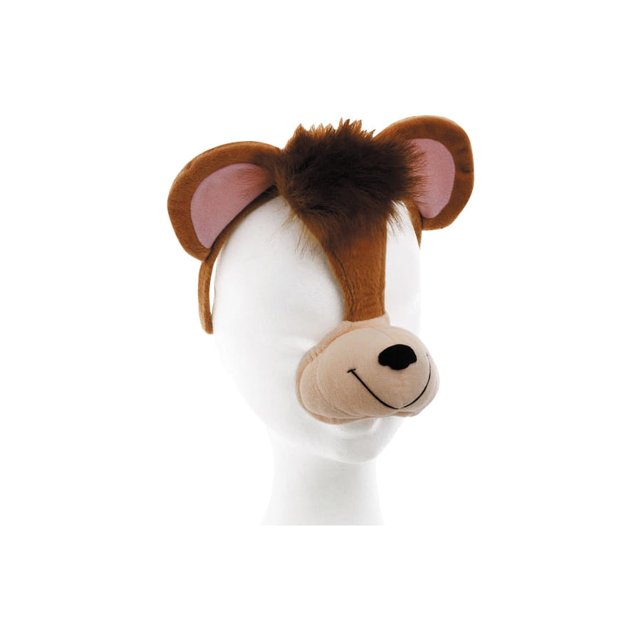 Serre-tête de singe bruiteur beige, marron et rose. Cet accessoire est livré avec piles non-changeables. Il est idéal pour un anniversaire ou pour un carnaval.
