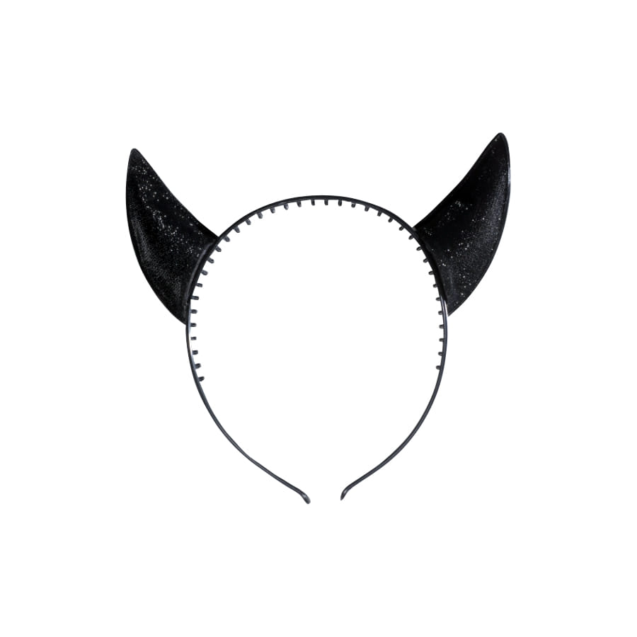 Serre-tête, pour femme, monté de deux cornes de diable de couleur noire. Les cornes sont parsemées de paillettes et sont fabriquées en matière réfléchissante. Servez-vous-en pour compléter votre déguisement de diablesse ou de démon.