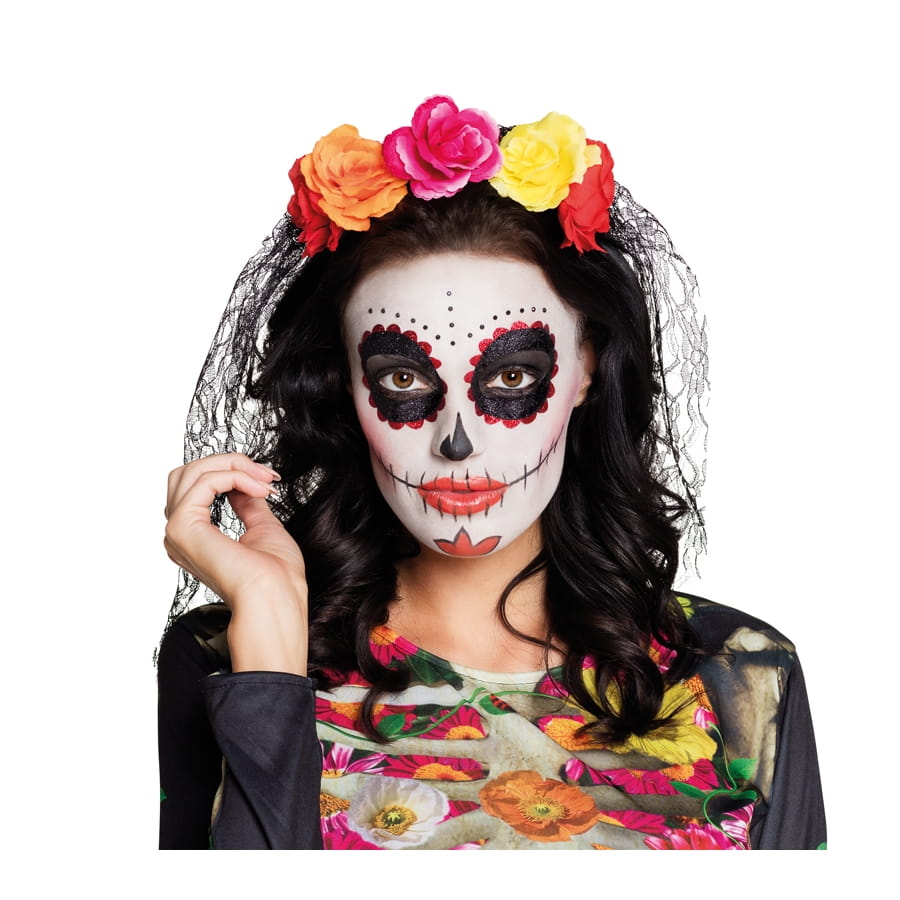 Pour personnaliser votre style vestimentaire, la serre tête dias de los muertos fleurs et voile est un accessoire indispensable, surtout pour la mariée. Comme tous les voiles de mariage, elle sert à vêtir votre tête et à cacher votre visage. Mais, vous pouvez la retourner en arrière pour exposer votre maquillage. Pour avoir une touche de gaieté, des fleurs ornent cette dernière. Elles sont de couleur variée : jaune, orange, rouge et rose.