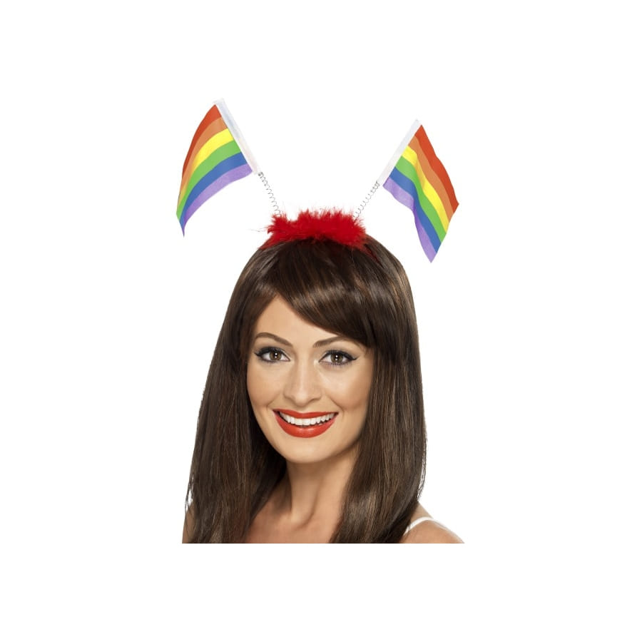 Comptez-vous participer à la prochaine Gay Pride ? Alors, cet accessoire est fait pour vous, que vous soyez homme ou femme. Ce sont deux petits drapeaux aux rayures multicolores, tout comme celui du LGBT Pride, montés sur un serre-tête. Ces drapeaux ont des manches en ressort. A part la Gay Pride, vous pourrez aussi porter cet accessoire à l'occasion de n'importe quels événements festifs : les carnavals, les fêtes à thème...