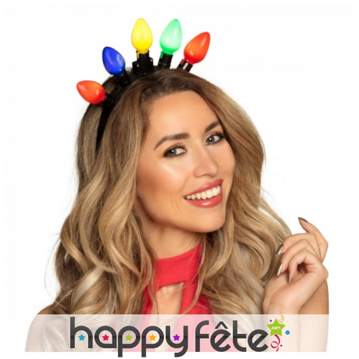 Apportez de l'originalité et une pointe d'humour à votre tenue de Noël, avec le serre-tête guirlande de Noël lumineuse.