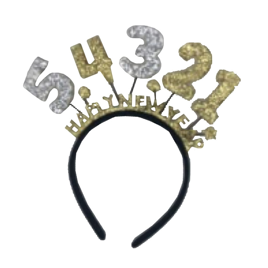 De couleur noire, ce serre-tête possède l'inscription Happy New Year en couleur or et des chiffres allant de 5 à 1.