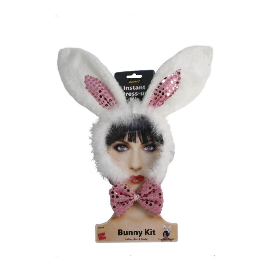 Pour vous transformer en lapine ou encore en séductrice ce kit vous sera utile. Vous pourrez le porter aussi pour la pâque, il est composé d'un serre-tête en forme d'oreille de lapin de couleur blanc, l'intérieur des oreilles sont rose, il y a aussi un nœud rose.