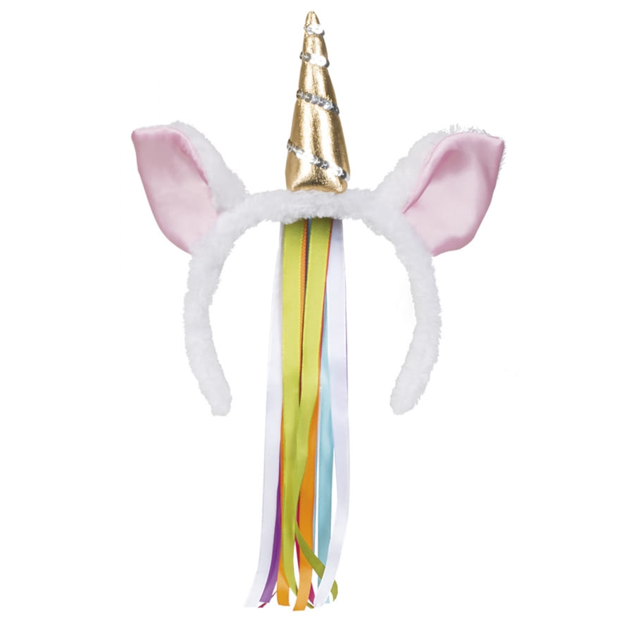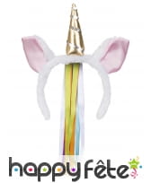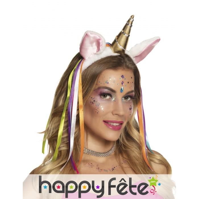 La corne de la licorne est dorée, les oreilles blanches aspect fourrure sont rose satiné (intérieur des oreilles).