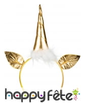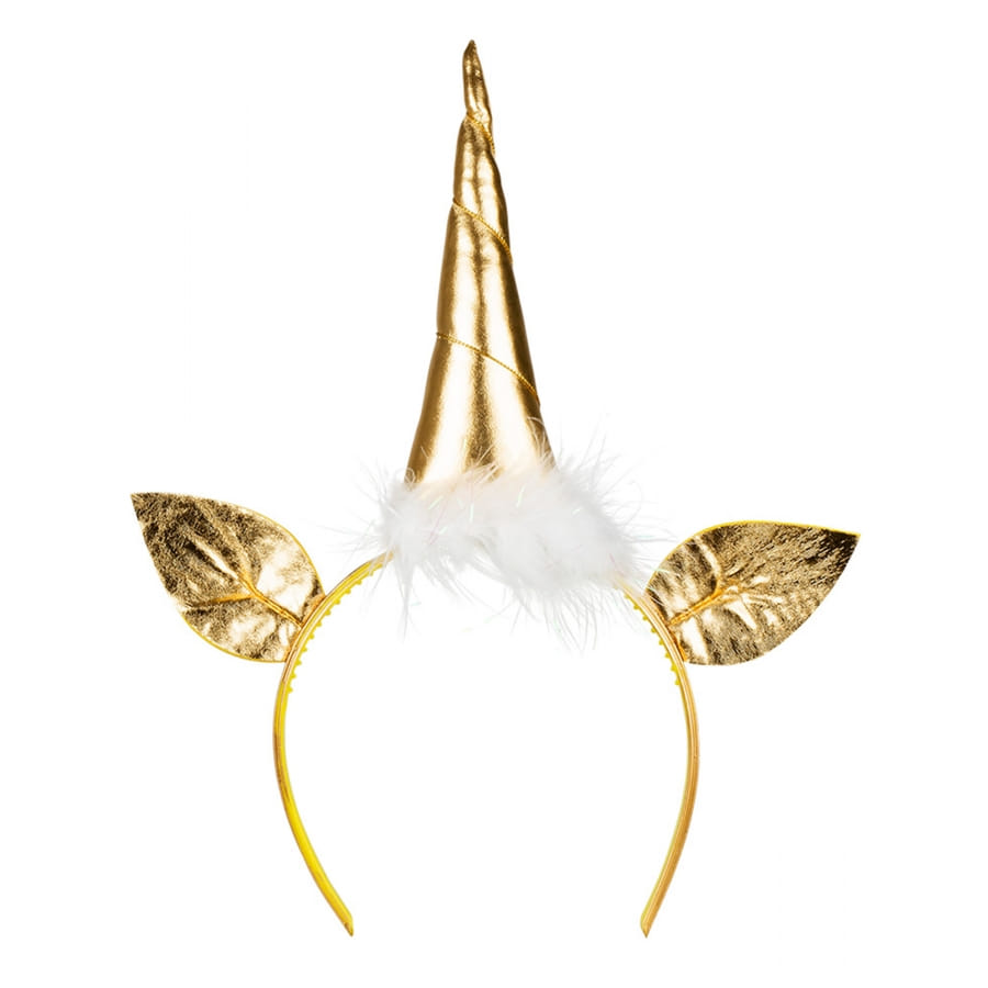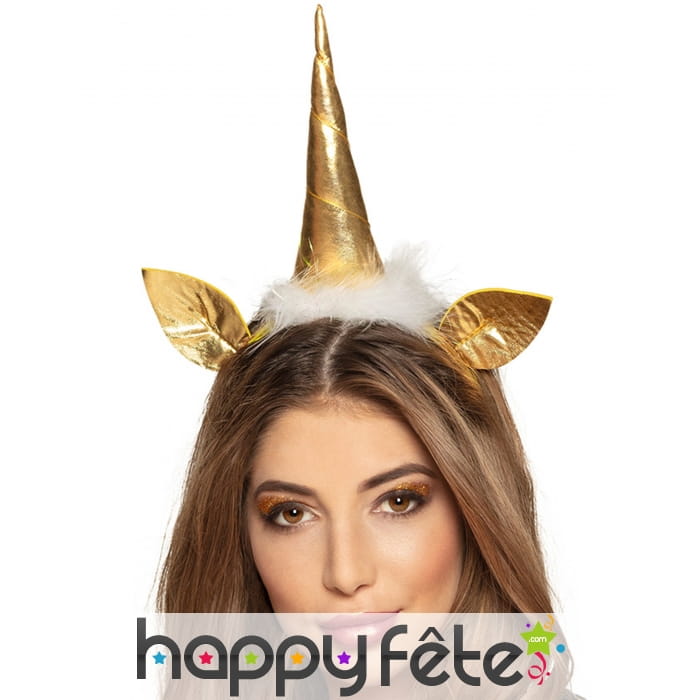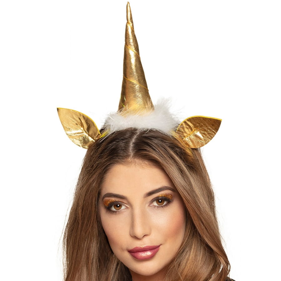 Parfait pour un enterrement de vie de jeune fille, le serre-tête licorne dorée, tête et oreilles, adulte, fera sensation lors d'une soirée en votre honneur.