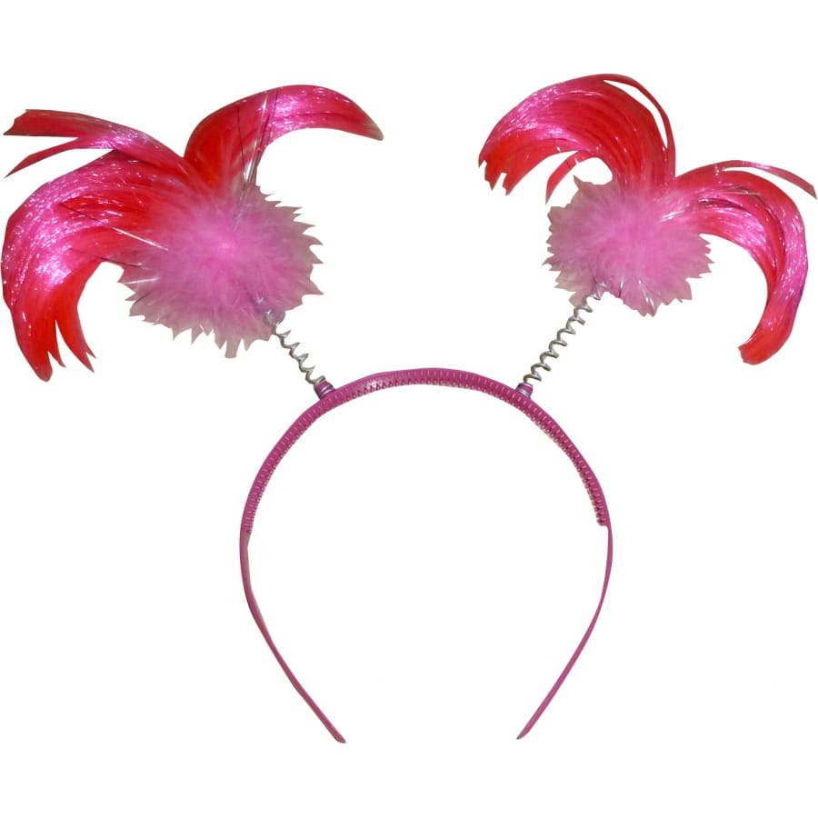 Le serre-tête manga possède deux antennes à ressort qui finissent par deux pompon avec des plumes.