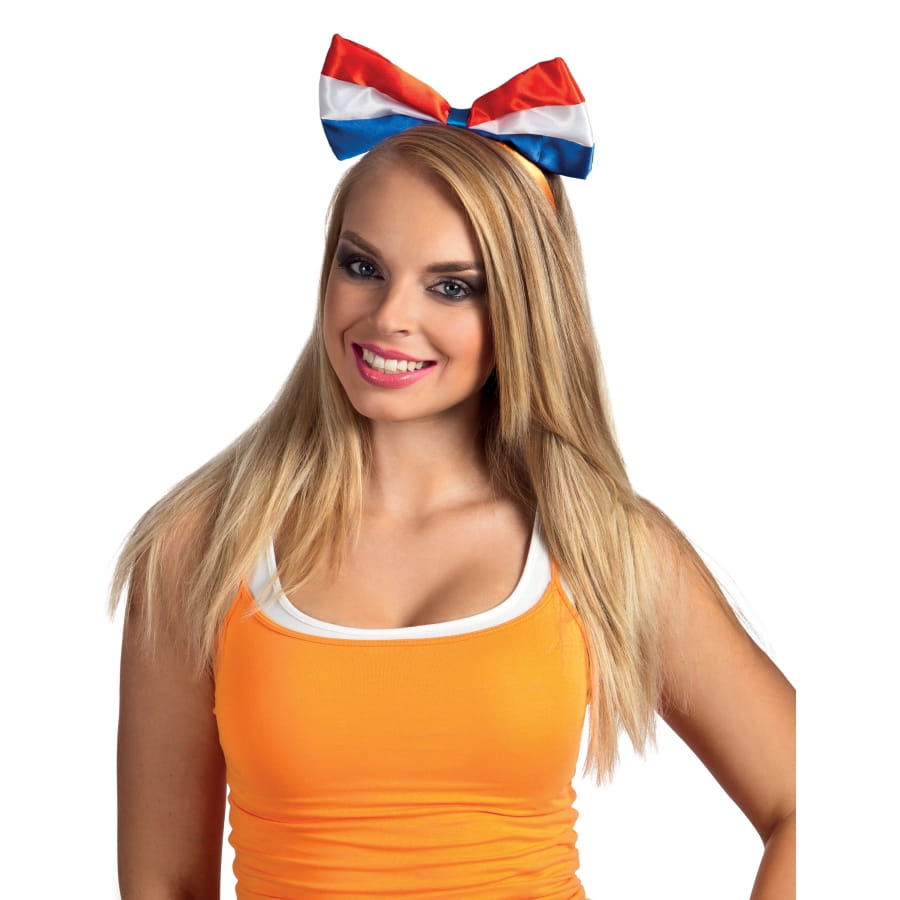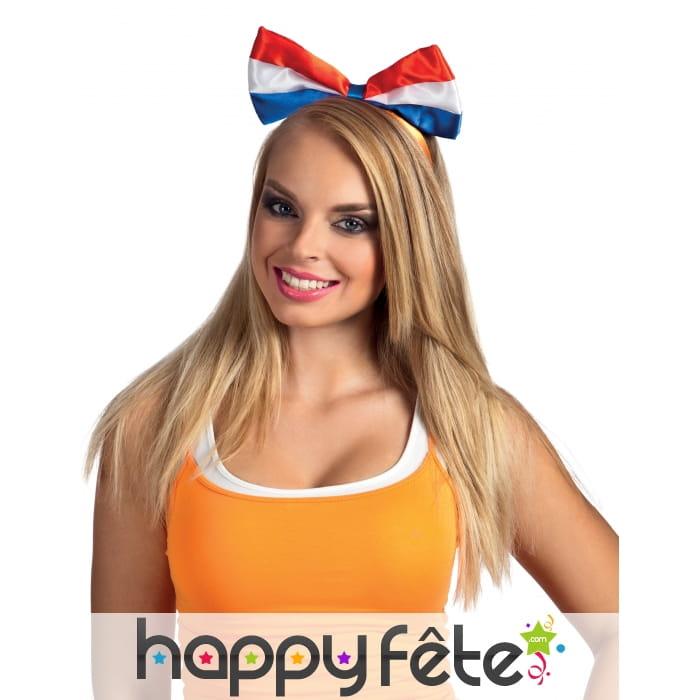 Pour adulte, ce serre-tête est surmonté en effet d'un noeud papillon floqué aux couleurs orange, blanc et bleu du drapeau des Pays-Bas.