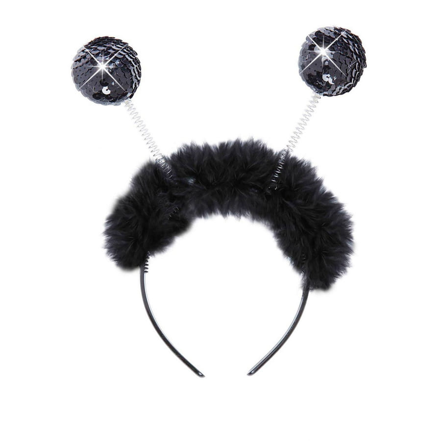 Le serre-tête noir boules à facettes et froufrous est un accessoire pour votre tenue disco.