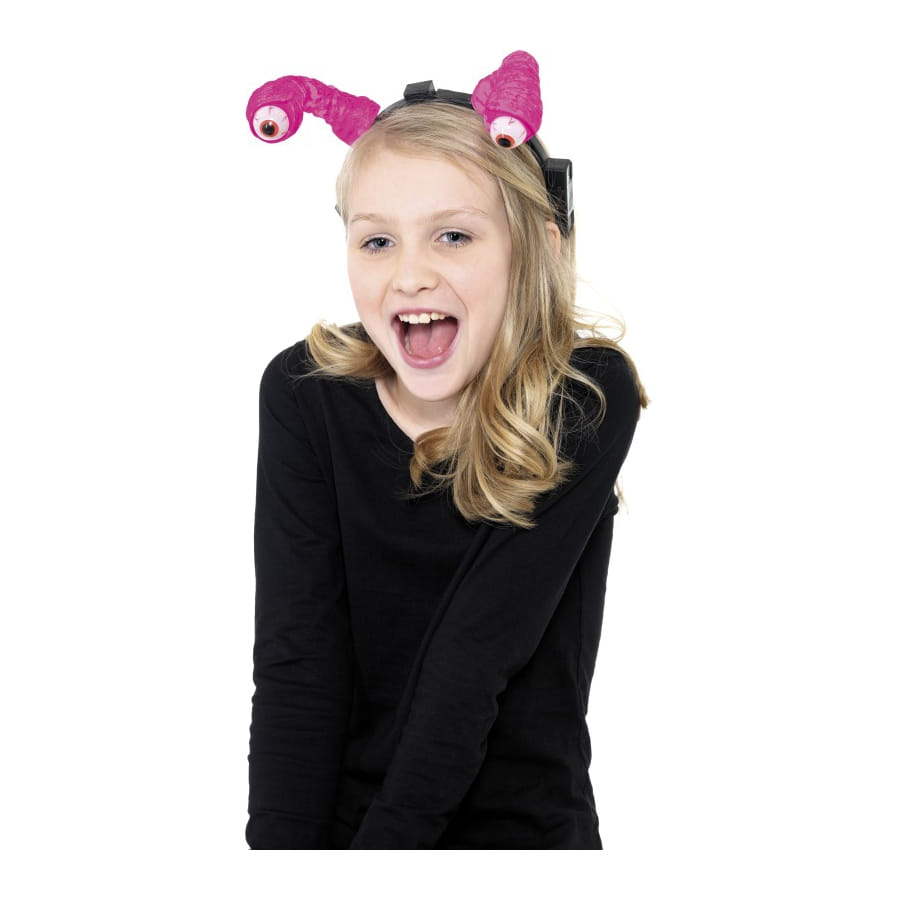 Serre-tête pour homme ou femme surmonté d'une paire d'yeux d'alien. Cet accessoire est disponible en rose. Si vous vous rendez à une fête basée sur le thème de la science-fiction, à une soirée d'Halloween ou à une fête alien, cet accessoire complétera parfaitement votre déguisement.