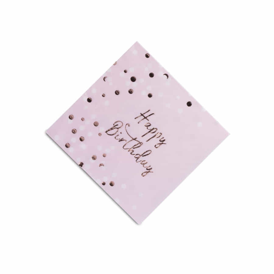 Leur fond rose délicat est parsemé de petits pois blancs et rose gold, apportant une touche de finesse et de raffinement. Et pour couronner le tout, l'inscription "Happy Birthday" trône fièrement au centre, rappelant que l'heure est à la fête !