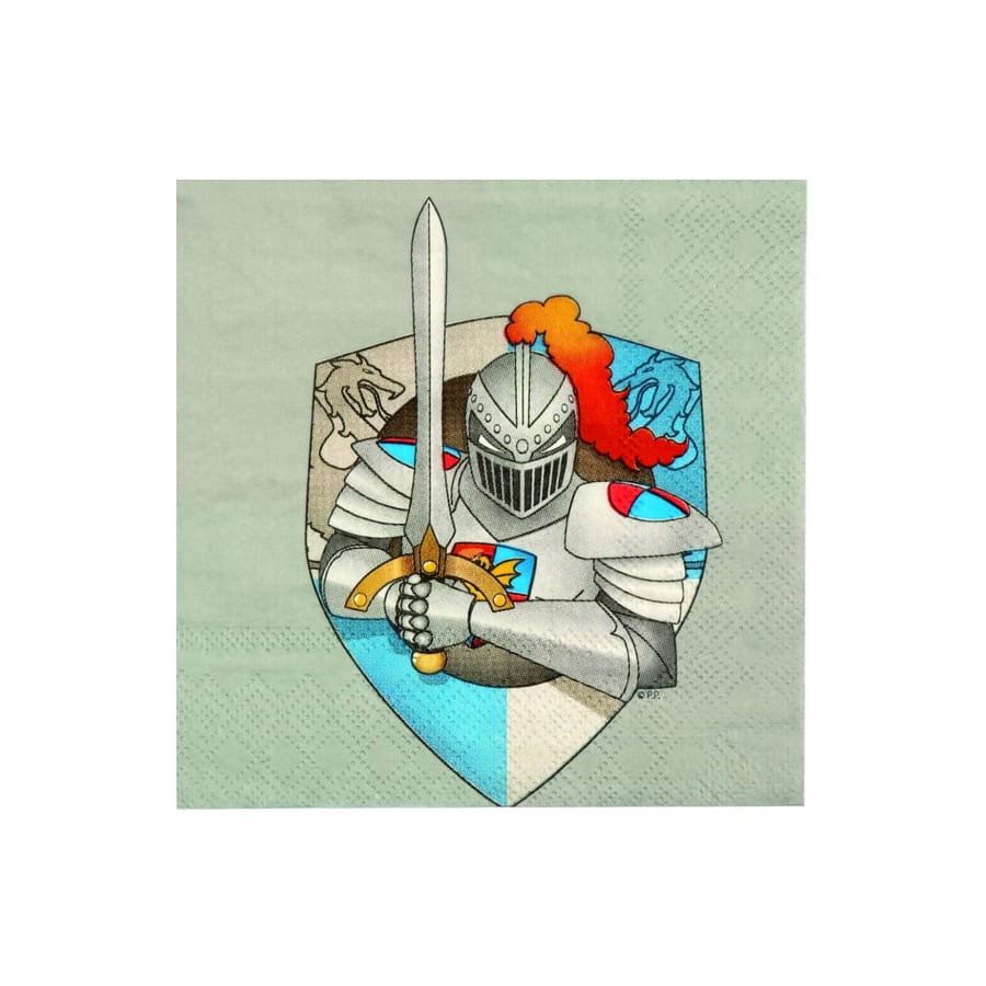 Une nouvelle génération de chevaliers de la table ronde débarque dans votre salle à manger ! Les petits garçons adoreront goûter autour d'une table décorée de ces serviettes chevalier en papier. L'article est composé d'un paquet de 12 serviettes en papier mesurant 25 x 25 cm chacun. Un chevalier armé a été imprimé au centre sur un fond gris.