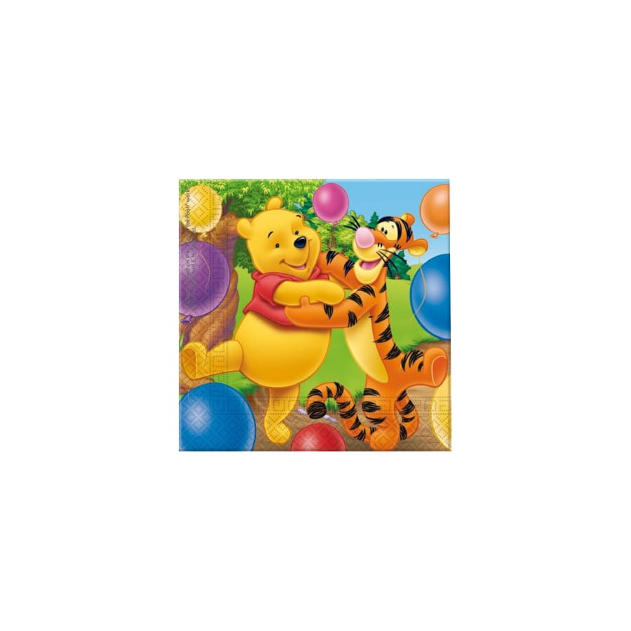 A une fête, il doit toujours y avoir des serviettes à portée de main. Si vous organisez une fêté sous le thème bande dessiné ou Winnie l'Ourson, ce lot de 16 serviettes vous sera nécessaire. Ces serviettes deux plis sont multicolores et font une taille de 33 cm sur une largeur de 33 cm.