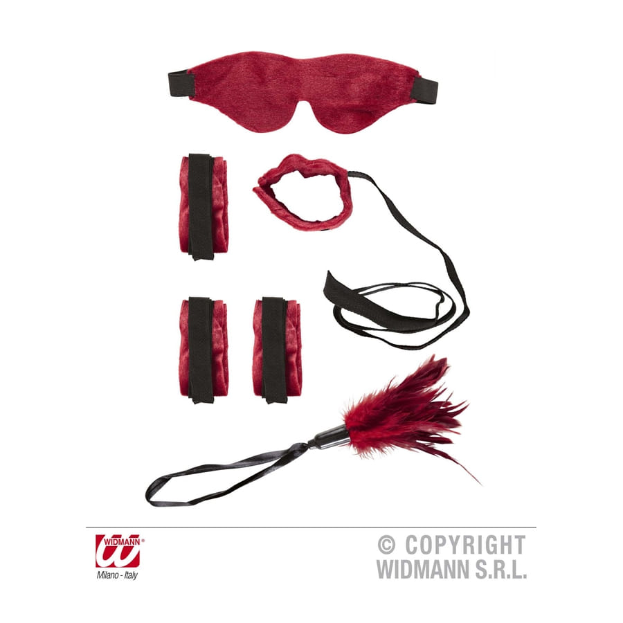Pour faire plaisir à votre partenaire, réservez-lui une soirée sexy avec ce set 50 nuances de Grey, des bandes pour les poignets et les pieds, un bandeau pour les yeux et des plumes, en rouge et noir bien sûr pour une passion dévorante d'amour.