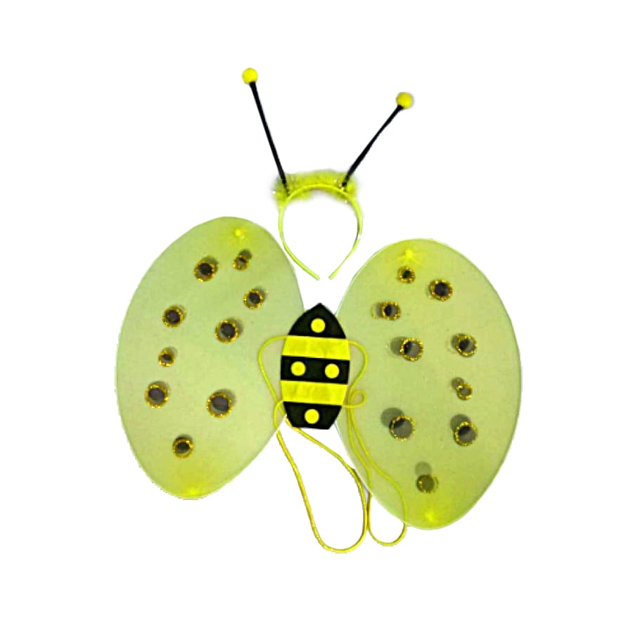 Pour toutes celles qui aiment les animaux, voici une bien singulière façon de vous métamorphoser, déguisez-vous en abeille, ce bel insecte producteur de miel. A cet effet, nous vous proposons cette paire d'ailes à leur effigie, et un serre-tête à antennes. Le set est bien sûr fourni en jaune et noir, la couleur des abeilles. Enfilez ce beau déguisement et offrez un amour aussi sucré que le miel à votre entourage. Set pour adulte.