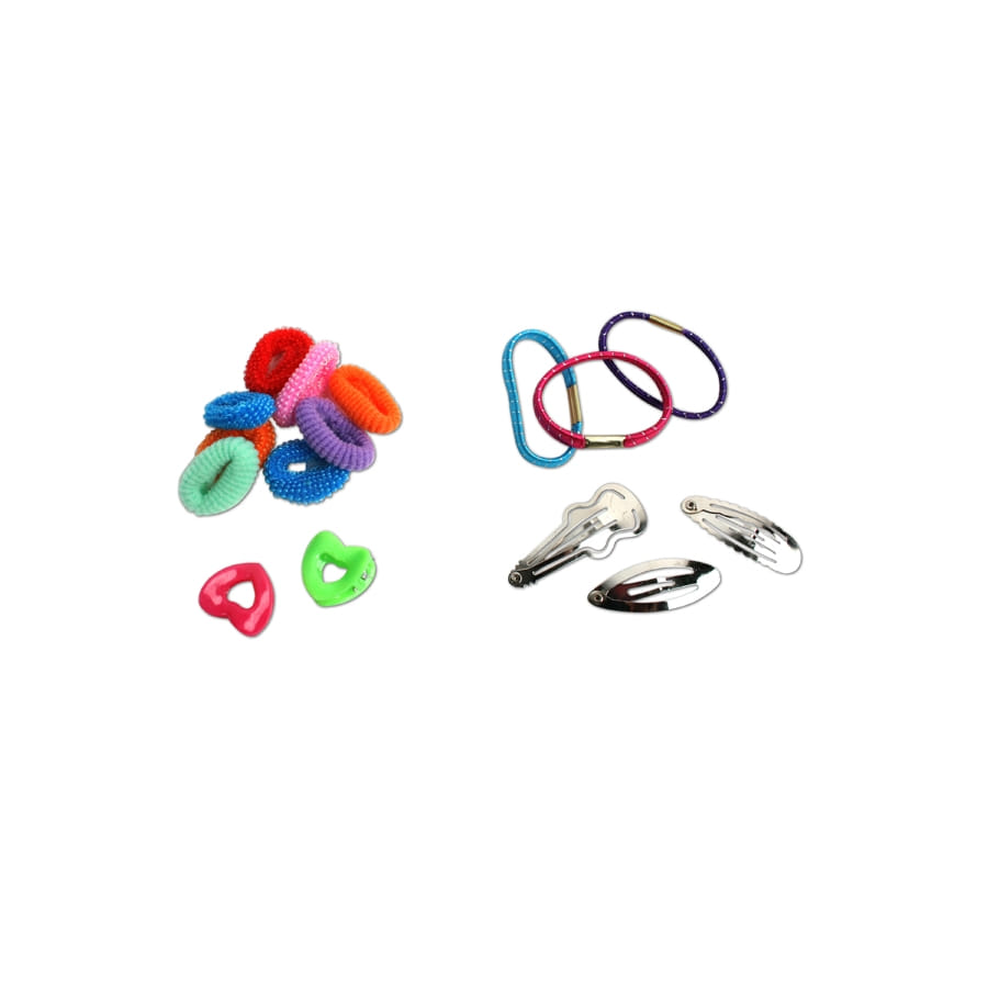 Pour nos petites coquettes, il n'y a rien de mieux que de bien se coiffer ! Habillez leurs cheveux de princesse avec ce set d'accessoires de coiffure que nous vous suggérons. Il comporte des petites chouchous et des élastiques multicolores, des petites barrettes argentées, etc. Attacher, tresser, pincer, elles pourront bien s'amuser. Des coiffures modes ou tendances, sages ou sophistiquées, elles n'auront qu'à choisir l'accessoire adéquat.