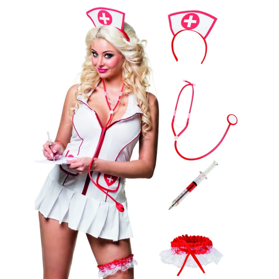 Un stéthoscope rouge en plastique termine cette série d'accessoires inédits destinés à une future infirmière séduisante et sexy !