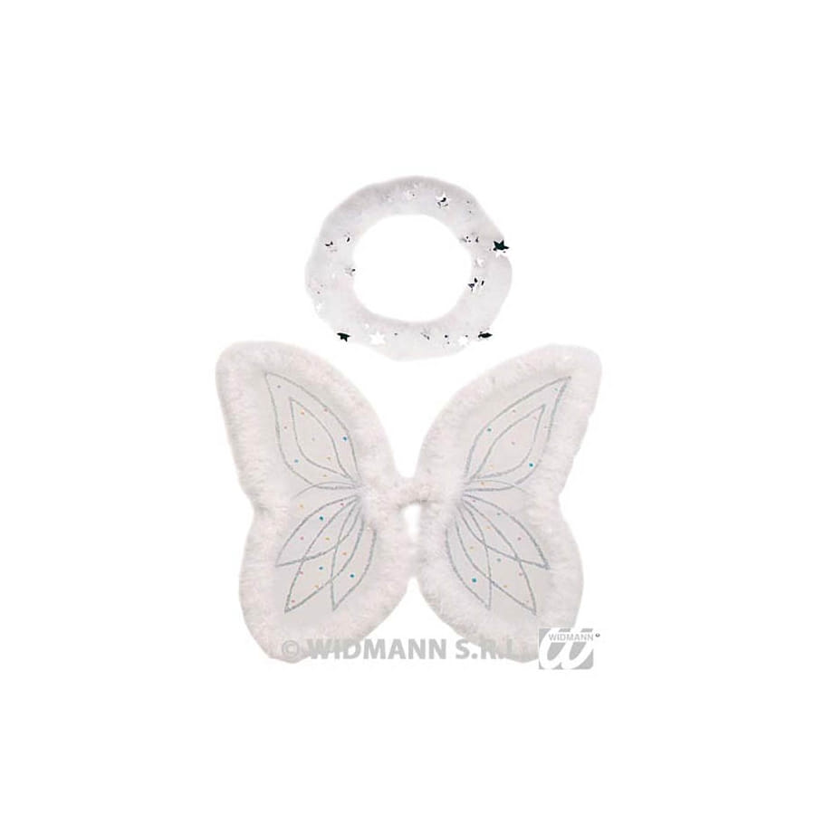 Set ange pour femme composé d'une paire d'ailes, d'une auréole et d'un marabout. Les ailes mesurent 49 centimètres de hauteur sur 26 centimètres d'envergure. C'est un set de déguisement idéal pour les fêtes de fin d'année ou pour les carnavals.