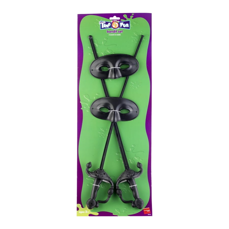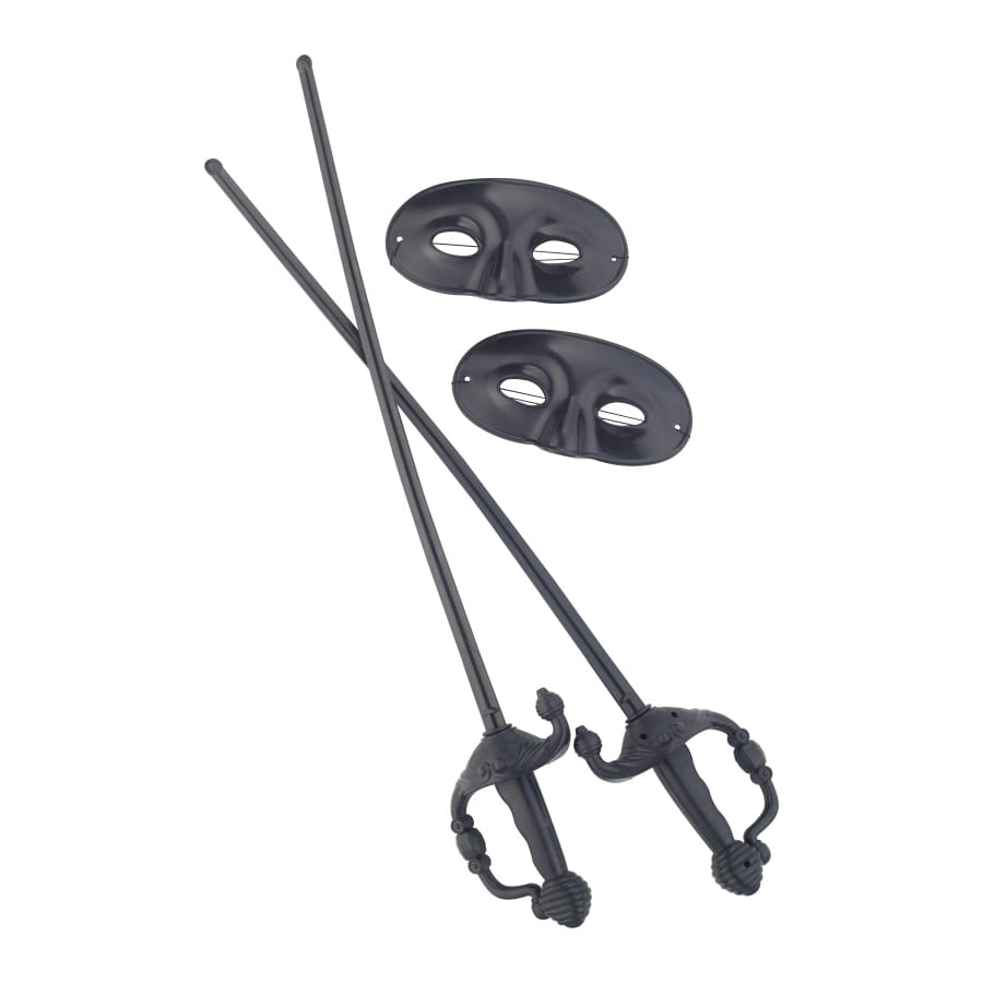 Set de bandit masqué, pour garçon, composé de 2 épées et de 2 masques de couleur noire. Votre enfant pourra se trouver un partenaire et se déguiser en Zorro pour une fête déguisée!
