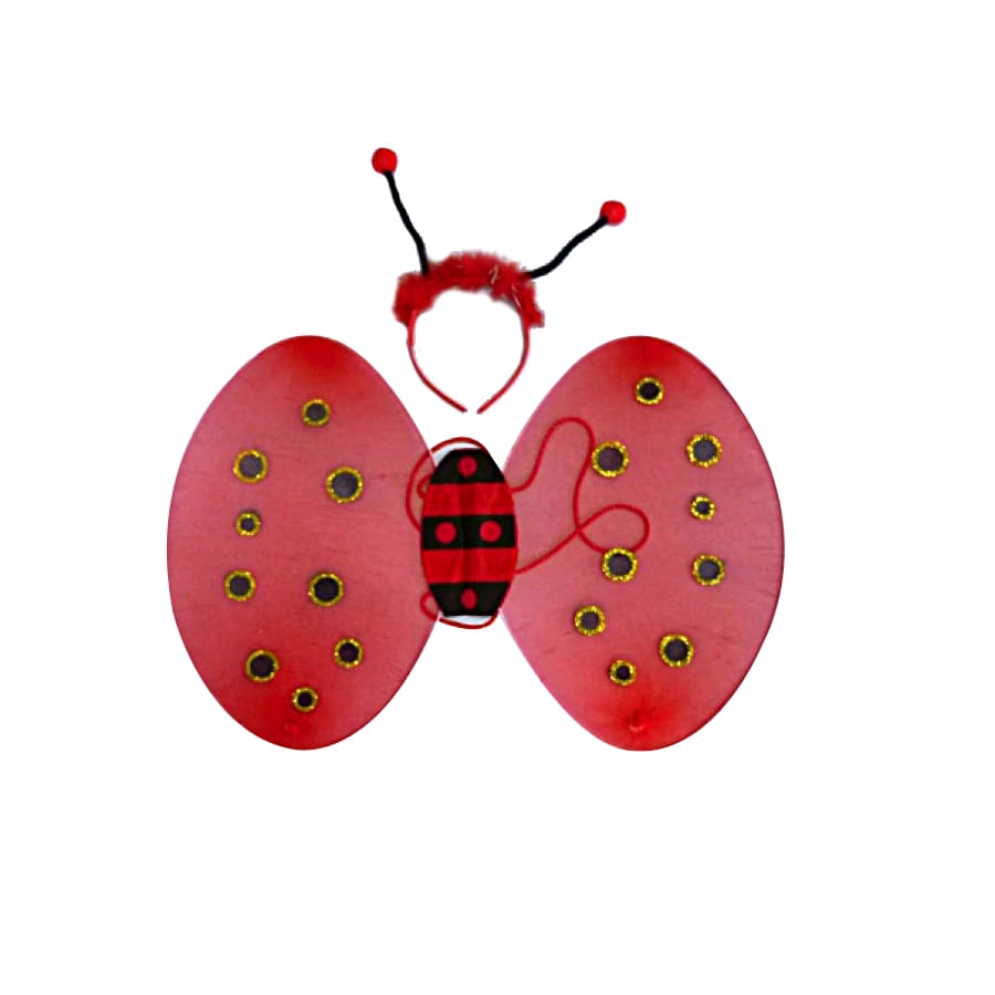 Voici un joli pack pour entrer dans le corps de la bête à bon Dieu, pour se déguiser pour une fête à thème animaux. Il s'agit d'une paire d'ailes de coccinelle qui font 48 cm de longueur pour 36 cm de largeur, et dont l'écart entre les ailes est de 9 cm, avec un serre-tête à antennes faisant 11 cm, le tout en rouge et pour adulte. Enfilez-le et portez chance autour de vous !